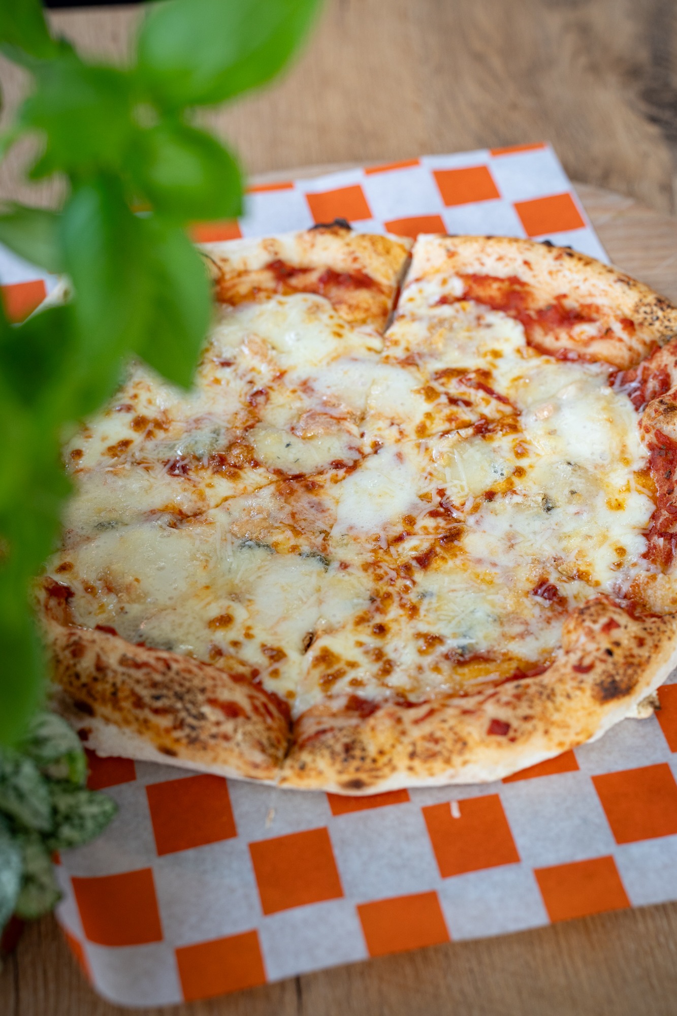 sos z włoskich pomidorów pelati, mozzarella, taleggio, gorgonzola, grana padano